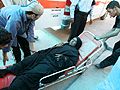 圖文報道:一名受傷的婦女被送進醫(yī)院