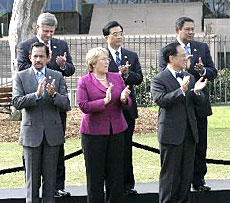 | 1989年11月,亞太經(jīng)合組織第一屆部長(zhǎng)級(jí)會(huì)議在澳大利亞首都堪培拉舉行,標(biāo)志著亞太經(jīng)合組織的正式成立。其組織機(jī)構(gòu)包括領(lǐng)導(dǎo)人非正式會(huì)議、部長(zhǎng)級(jí)會(huì)議、高官會(huì)、委員會(huì)和專題工作組等。其中,領(lǐng)導(dǎo)人非正式會(huì)議是亞太經(jīng)合組織最高級(jí)別的會(huì)議。截至2007年9月,亞太經(jīng)合組織共有澳大利亞、中國(guó)、美國(guó)、日本、韓國(guó)等21個(gè)成員。