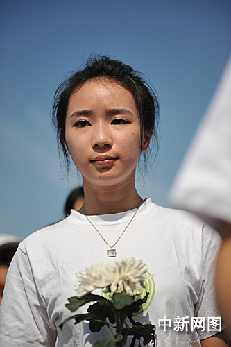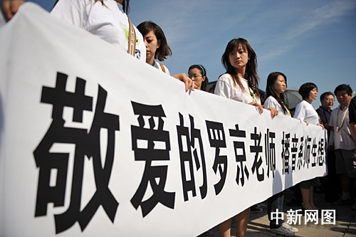 圖:中國傳媒大學(xué)學(xué)生手捧白花送別師兄羅京