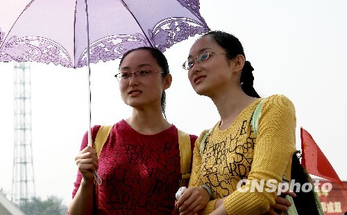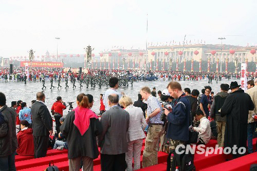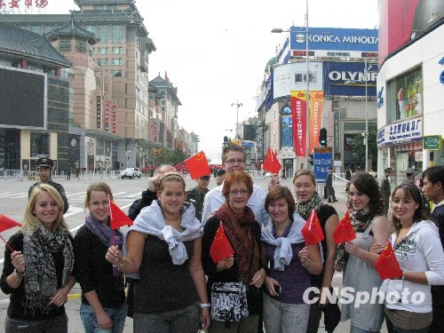 圖:外國游客爭(zhēng)睹閱兵風(fēng)采