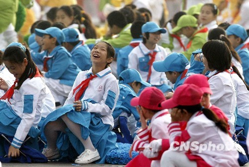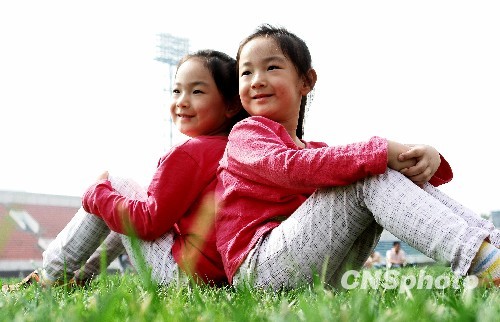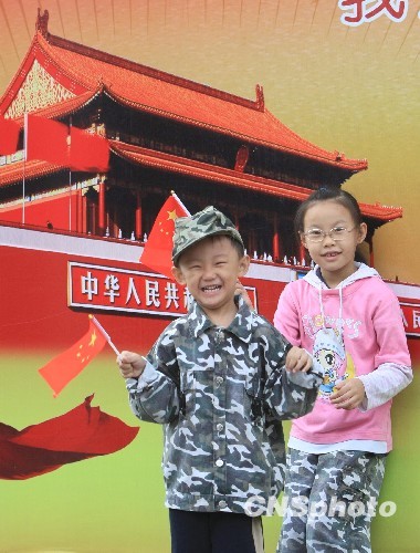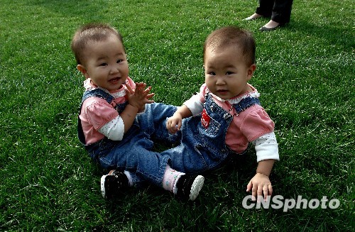 圖:天津百對(duì)雙胞胎同秀才藝共度國慶(2)