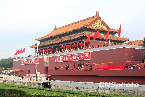 圖:北京天安門廣場(chǎng)節(jié)日氣氛濃郁