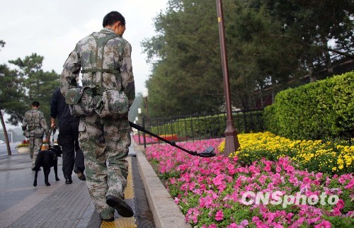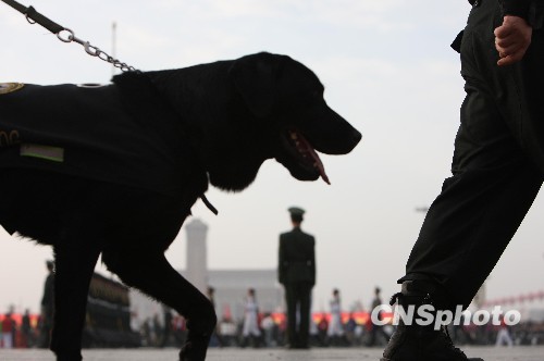 圖:國慶慶典前搜爆犬在行動(dòng)