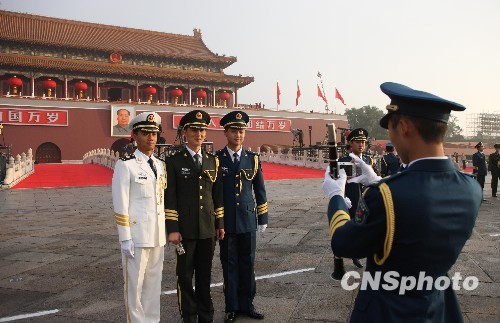 圖:軍樂隊(duì)隊(duì)員在天安門前合影