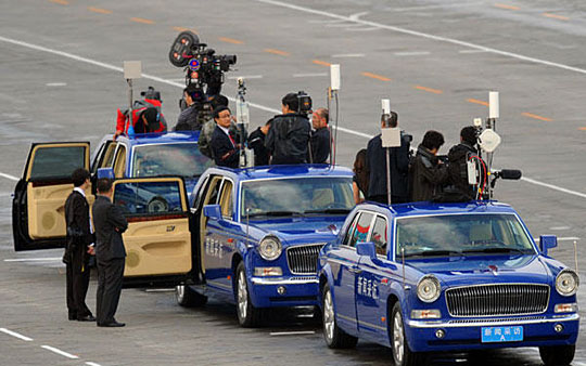 圖:國慶盛典現(xiàn)場(chǎng)的紅旗牌采訪車
