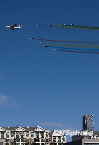 國(guó)慶閱兵:領(lǐng)隊(duì)機(jī)梯隊(duì)飛過(guò)北京上空