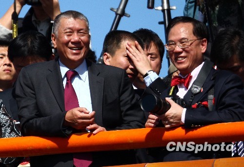 國(guó)慶慶典:曾蔭權(quán)在天安門城樓拍照