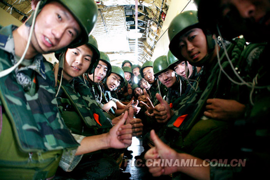 圖:空降兵高空傘降獻(xiàn)禮空軍成立60周年