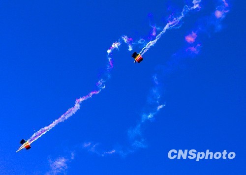慶祝空軍成立60周年跳傘表演猶如仙女散花(3)