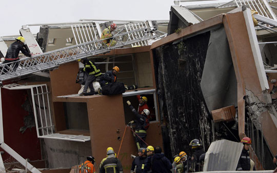 圖:智利強(qiáng)烈地震 救援隊廢墟中搜救幸存者(2)