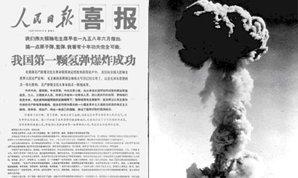 在氫彈爆炸成功的同時,中國政府重申:“中國進行必要而有限制的核試驗,發(fā)展核武器,完全是為了防御,其最終目的就是為了消滅核武器”!霸谌魏螘r候,任何情況下,中國都不會首先使用核武器!
