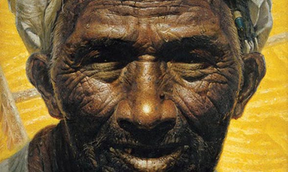 羅中立《父親》一畫曾獲“中國青年美展”一等獎,其畫面具有一種悲劇性的震撼力,表現了生活在貧困中的老農形象;老農開裂的嘴唇、滿臉的皺紋以及手中粗劣的碗等等寫實的描繪,消除了觀賞者與作品之間的隔膜,畫家藉此來對傳統(tǒng)文化和民族進行反思。
