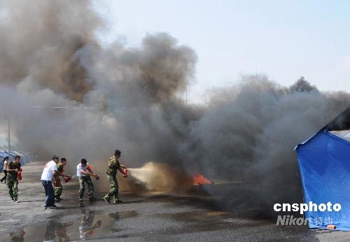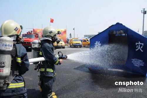 圖:成都舉行帳篷安置點(diǎn)消防救援演習(xí)