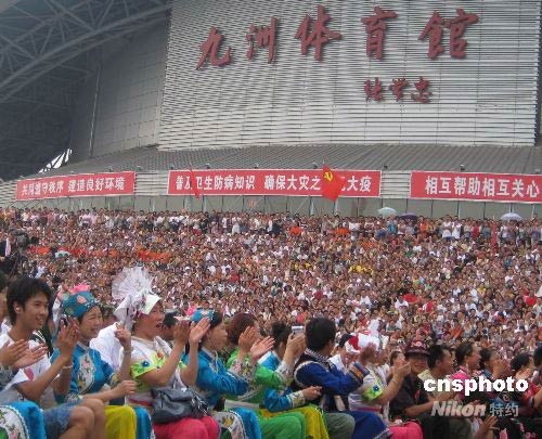 圖:綿陽(yáng)民眾九洲體育館內(nèi)觀看慰問(wèn)演出