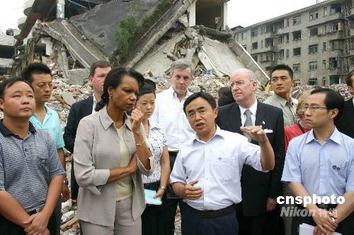 圖:美國(guó)國(guó)務(wù)卿賴斯赴四川地震災(zāi)區(qū)慰問(wèn)