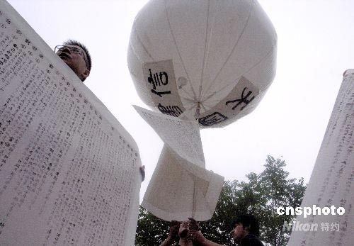 北京藝術(shù)家為地震遇難者放飛"天國(guó)書(shū)信"