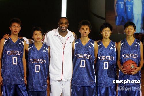 圖:NBA球星與汶川籃球小將“親密接觸”