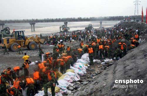 圖:救援官兵成功封堵綿遠河大堤潰口