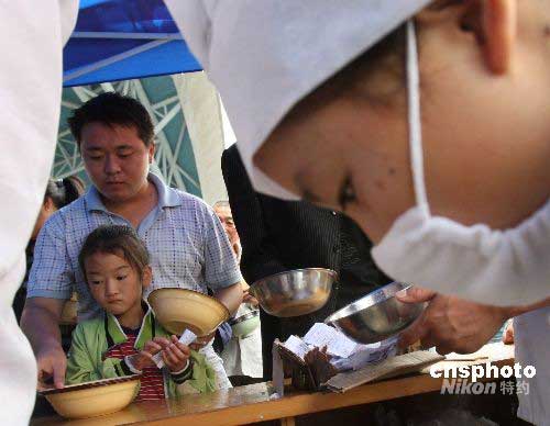 圖:地震災區(qū) 父女領取父親節(jié)免費午餐