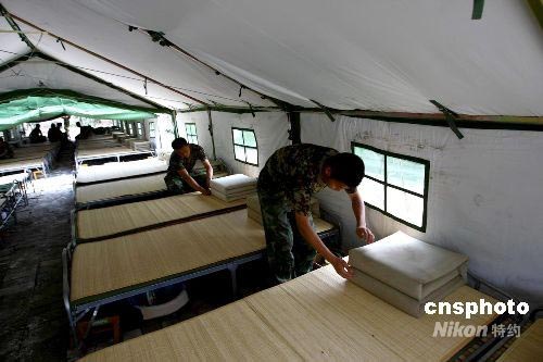 圖:解放軍官兵四川震區(qū)的帳篷生活