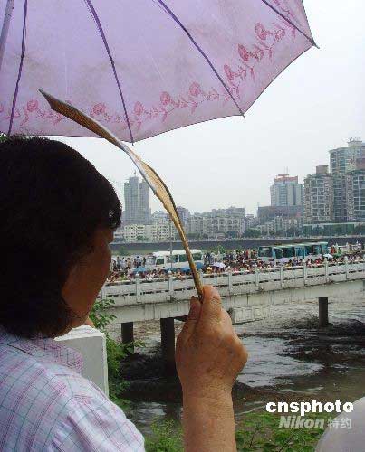 圖:上萬(wàn)綿陽(yáng)市民涌向河堤探望洪水水勢(shì)