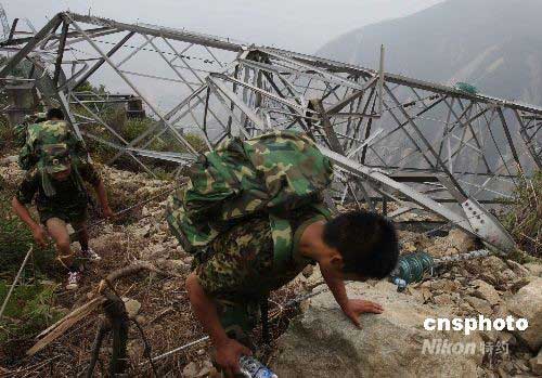 圖:武警工程兵冒險(xiǎn)搶修"大熊貓生命之路"