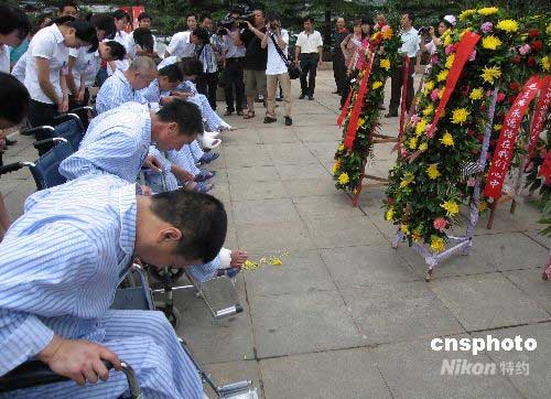 圖:志愿者祭奠北川中學(xué)遇難學(xué)生