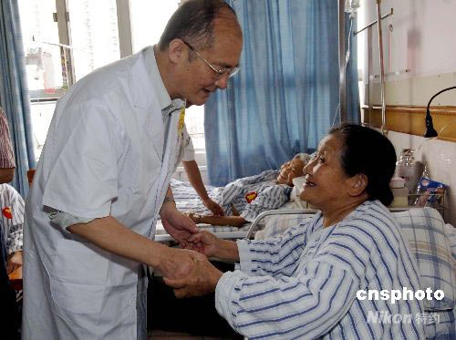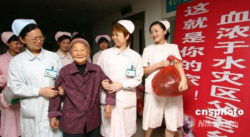 圖:地震災(zāi)區(qū)百歲老人傷愈返家鄉(xiāng)