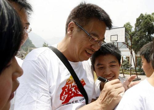 圖:香港藝員吳孟達到地震災(zāi)區(qū)四川什邡