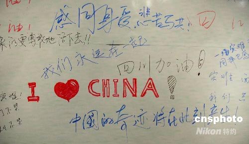 圖:觀眾在汶川抗震救災(zāi)紀(jì)實圖片展留言