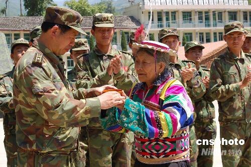 圖:四川震區(qū)羌族民眾夸贊解放軍
