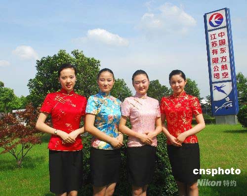 圖:兩岸周末包機空姐著20萬云錦裝亮相