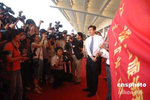 圖:首都機場舉行儀式歡送赴臺陸游團