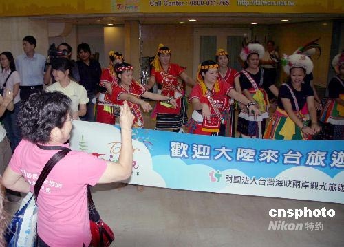 圖:大陸居民赴臺旅游首發(fā)團抵松山機場