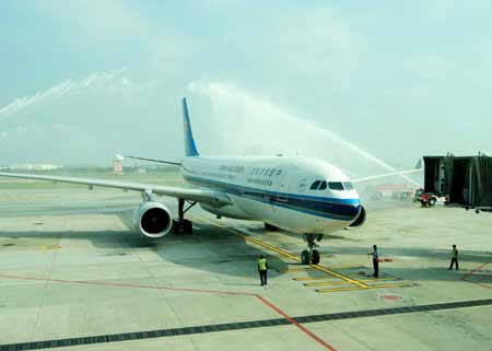 組圖:臺灣中華航空公司兩岸周末包機首航上海