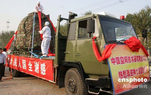 中國空間技術(shù)研究院迎接神七返回艙回家