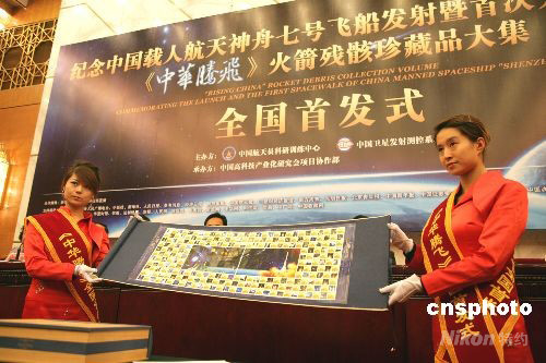 圖:火箭殘骸郵票珍藏品大集舉行首發(fā)式