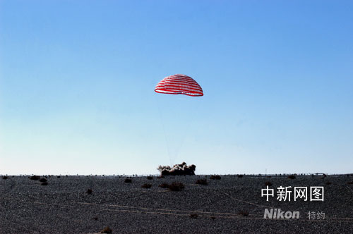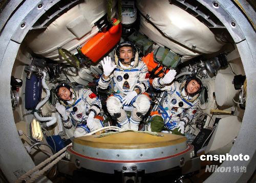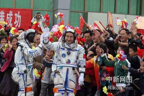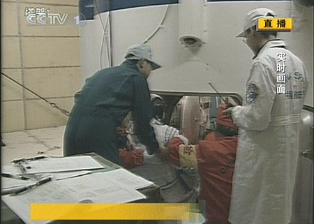 圖:神舟七號返回在即航天員穿好艙內(nèi)服