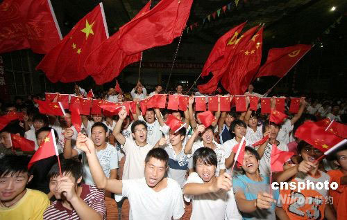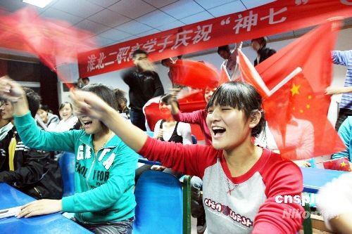 圖:重慶大學(xué)生歡慶“神七”飛天成功