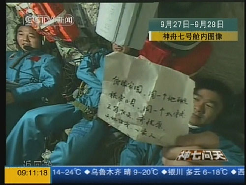 圖:廈門大學(xué)學(xué)生關(guān)注神七航天員翟志剛出艙