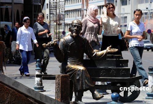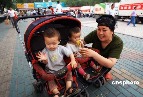 圖:烏魯木齊街頭的龍鳳雙胞胎