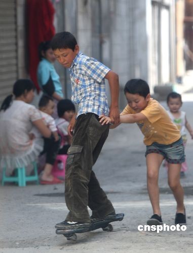 圖:烏魯木齊市兒童在街巷玩耍