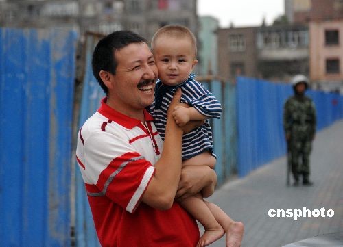 烏魯木齊街頭笑容滿面的父子倆