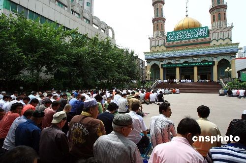 圖:烏魯木齊穆斯林主麻日清真寺內做禮拜