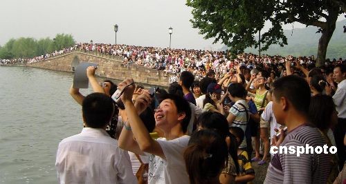 圖:杭州西湖飽覽五百年一遇日全食