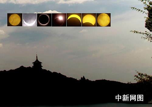 杭州西湖上日全食全程效果圖 如夢(mèng)如幻