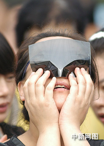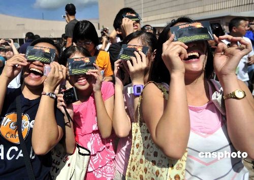 組圖:中國(guó)各地群眾觀看日食奇觀
