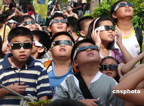 圖:臺(tái)北小朋友觀看日偏食