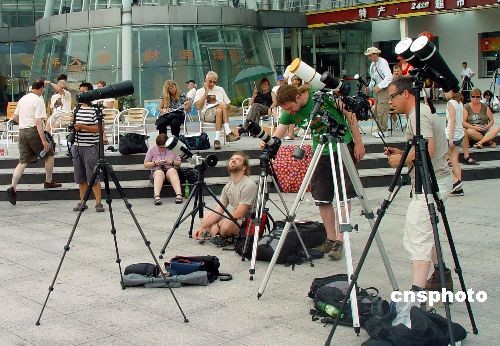 中國(guó)各地群眾觀看日食奇觀:中外愛好者北京齊待日偏食