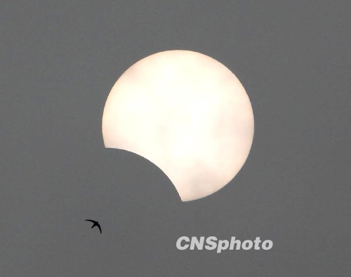 中國各地觀測(cè)日食奇觀:北京上空燕子陪伴日偏食